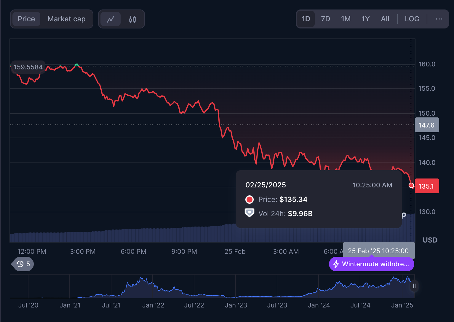 And let’s not forget the Bybit hack on February 21st—now officially the biggest financial heist in history, according to Arkham Intelligence. That’s right, folks—bigger than the infamous $1 billion Central Bank of Iraq robbery in 2003. In fact, this hack more than doubled the previous biggest crypto exploit, which was the PolyNetwork’s $611M loss in 2021. Crypto has had its fair share of crimes, but when hackers start making history, you know something’s broken. And guess what? Markets hate bad press.